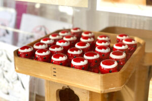 中に入るとタコをモチーフにした「オクトパス君」がずらり!「オクト(置くと)+(試験に)パス」する合格祈願の縁起物として、南三陸町の名物として大人気の商品。私が訪れた時も、全国から注文が殺到していて、中では貴重な「オクトパス君」作りが見学できます。この他にもまゆ細工の可愛い商品なども色々。かつてここ南三陸町は、絹の生産でも栄えていて世界でも最高の生糸と称された繭なんです!