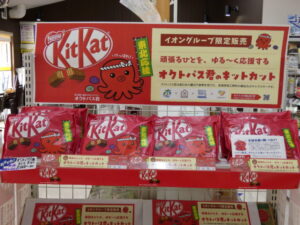 東日本大震災後、長期に渡って地域コミュニティ再生支援や地域産品のモノづくり支援など行ってきた「イオン心をつなぐプロジェクト」の活動がご縁となり、南三陸町の合格祈願のゆるキャラ「オクトパス君」(YES工房)とコラボした「キットカット」が販売されてます。