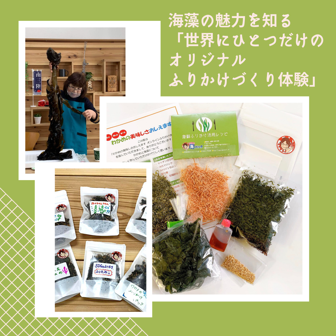 漁師の奥さんで、南三陸の海産物の魅力を伝えたいと海産物の通販事業をしている「たみこの海パック」海藻の魅力をもっと身近に感じてほしいと《世界に一つだけのふりかけ》をつくる体験を一緒にやりませんか。