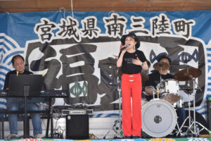 関東全域を中心にソロシンガーとして精力的に活動し、有名ミュージシャンとのコラボや海外アーティストのオープニングアクトとしても活躍。東日本大震災後は、東北にも活動範囲を広げ、楽天平成の森球場での国歌斉唱、南三陸町福興市や夏祭りにも毎年出演いただき、会場を盛り上げていただいてます。今回は2年ぶりに南三陸の町に歌声が響き渡りました!