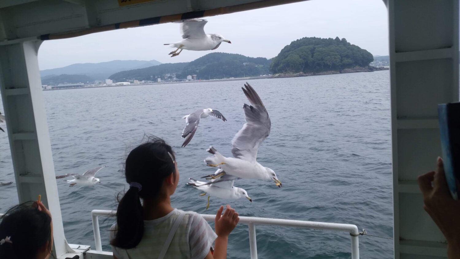 リアス式海岸特有の荒々しい岬や島々【荒島・野島・椿島(国天然記念物)】の景色を眺めてウミネコと遊びながら南三陸の海を楽しめます。