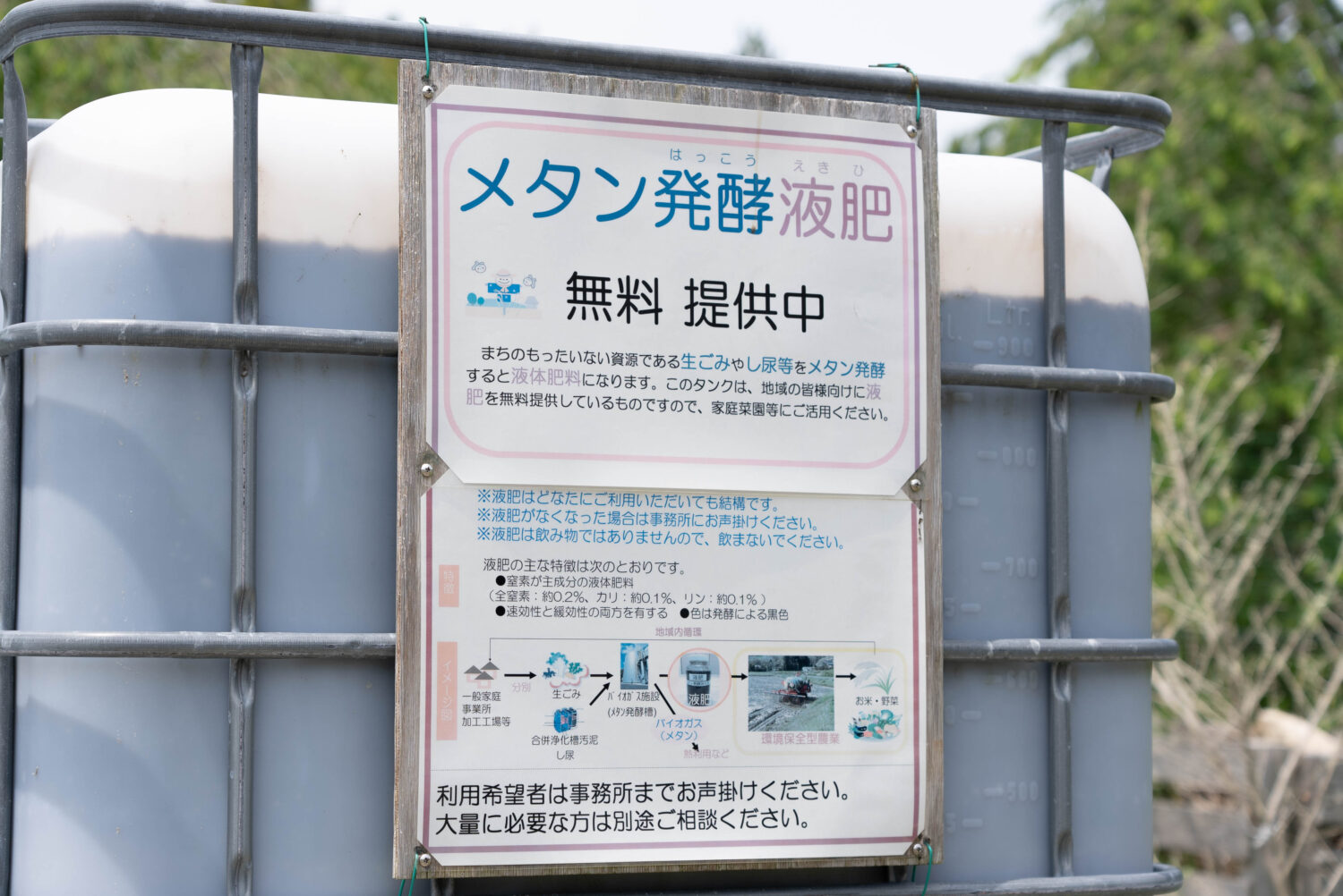 そこで、2015年10月、南三陸BIOの稼働開始に伴い、町内全域で生ごみの分別回収がスタート。各家庭や飲食店から集めた生ごみを町内の南三陸BIOで発酵処理すると、バイオガスと液体肥料(以下、液肥)が生成されます。