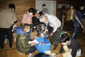 そのまま、支援物資が届き、それをどう使って一夜を過ごすかを参加者同士で考えて行動したいただきます。限られた物資を水やガス、電気が使えない中、どう使っていくかも頭で考える以上に必要なことがみえてきます。