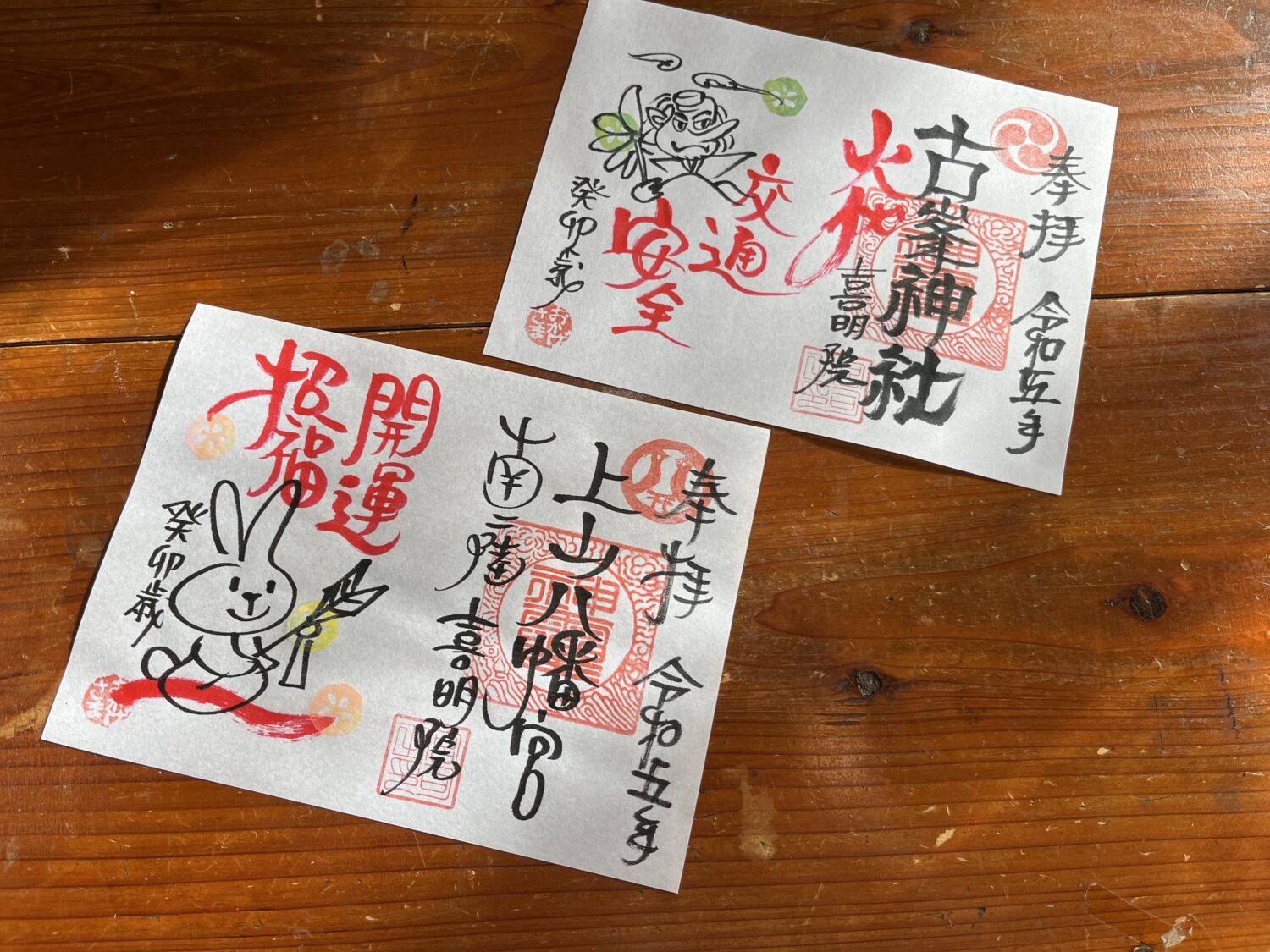 上山八幡宮では、年が変わる時間帯から地元の方中心に初詣に訪れ、1年の始まりに今日ここに在ることへの感謝と、より具体的な事やものの現実化を「宣言」されてください。自信、勝利、集中力へ導いてくれるでしょう。干支の卯が描かれた御朱印は、元旦から数量限定で提供。手書きの御朱印スタイルはとても人気です。御朱印は数量限定で、1000円の初穂料でお渡ししています。