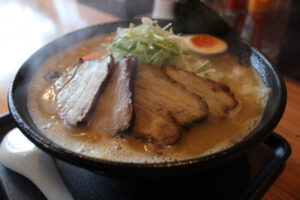 払川ダムからバイクで10分ほどの距離にある「飛上」は、味噌味が人気のラーメン屋。絶品のラーメンと餃子で満腹になること間違いなしです!