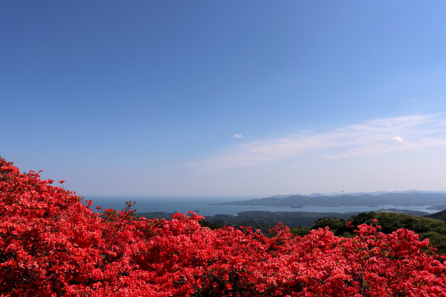 山頂は南三陸の里と海が一望でき、5月には毎年ツツジが咲き乱れています。