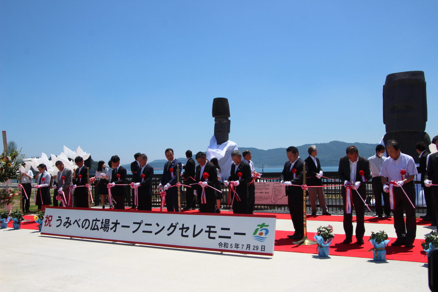 新しくオープンした「うみべの広場」にモアイ像2体が揃う!