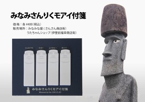 左側のモアイ像は、門外不出といわれたイースター島でつくられたモアイ像。東日本大震災発生後に南三陸町の復興に必要だとチリの人々が動き、つくってくださったもの。モアイの意味は「未来を生きる」南三陸町の未来を見守るモアイ像の眼差しをぜひ観に行ってみてください。目の入ったモアイ像は世界に2体のみ。