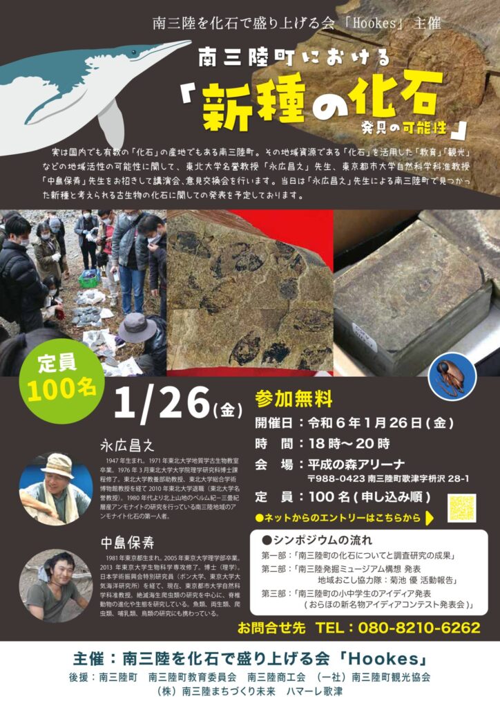 南三陸町の化石について、改めて様々な活動と共に報告するため、今回のシンポジウム開催を決定しました。