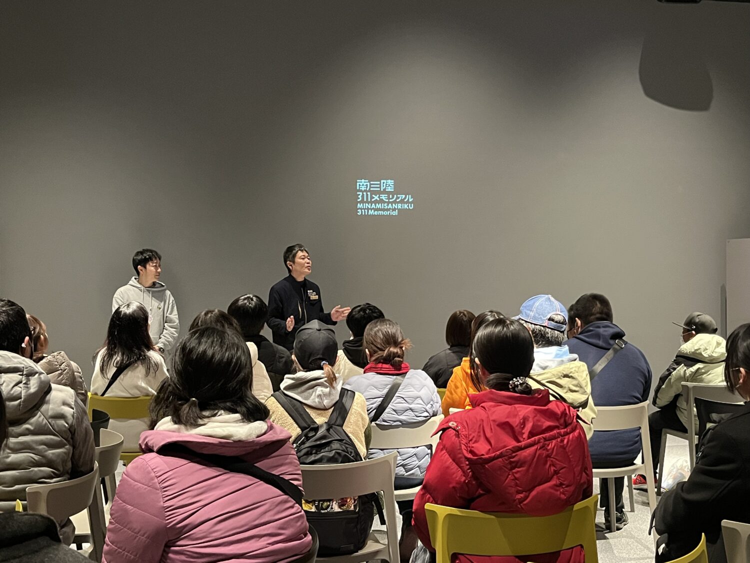 まず、南三陸311メモリアルで、東日本大震災を経験した町民の話を聴けるラーニングプログラムを皆で受講しました。