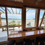 奥には小上がりもあり子ども連れの方にもやさしく、外を眺めると目の前に海が広がり、「海風を感じてほしい。」とテラス席も用意されていて、こちらはペットとの利用も可能です。