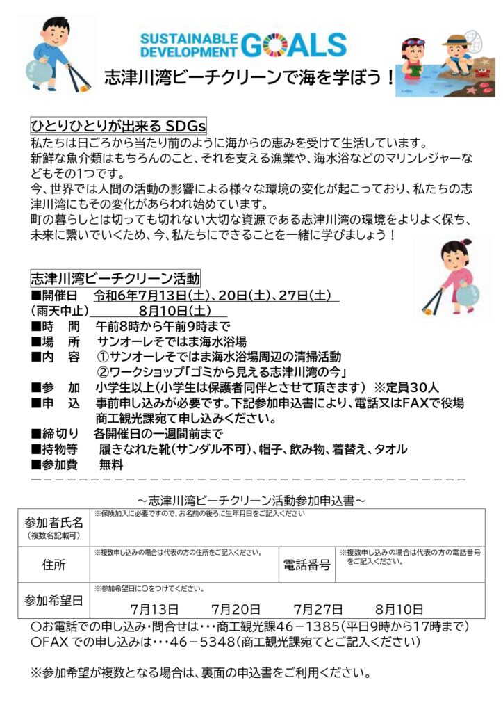 内容:①サンオーレそではま海水浴場周辺の清掃活動