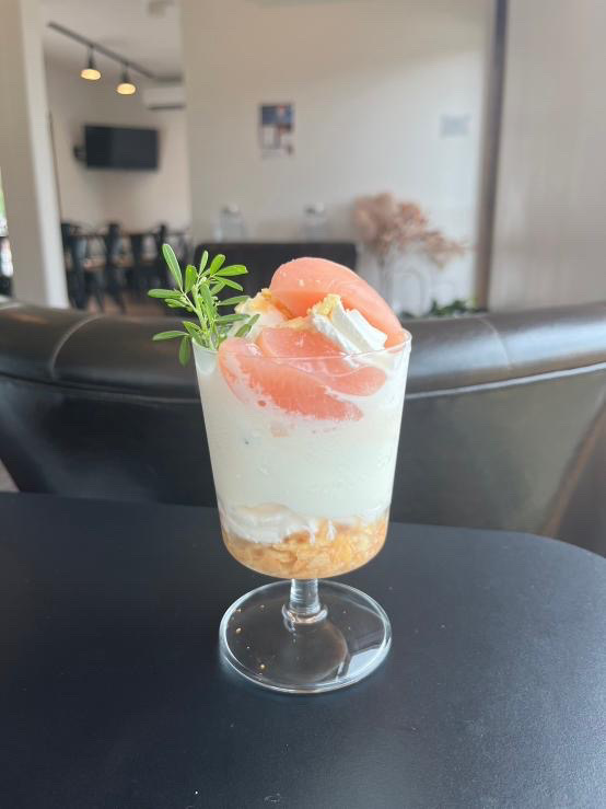 大沼農園の桃を使ったスイーツやお料理を町内店舗で味わうことができますよ🍑