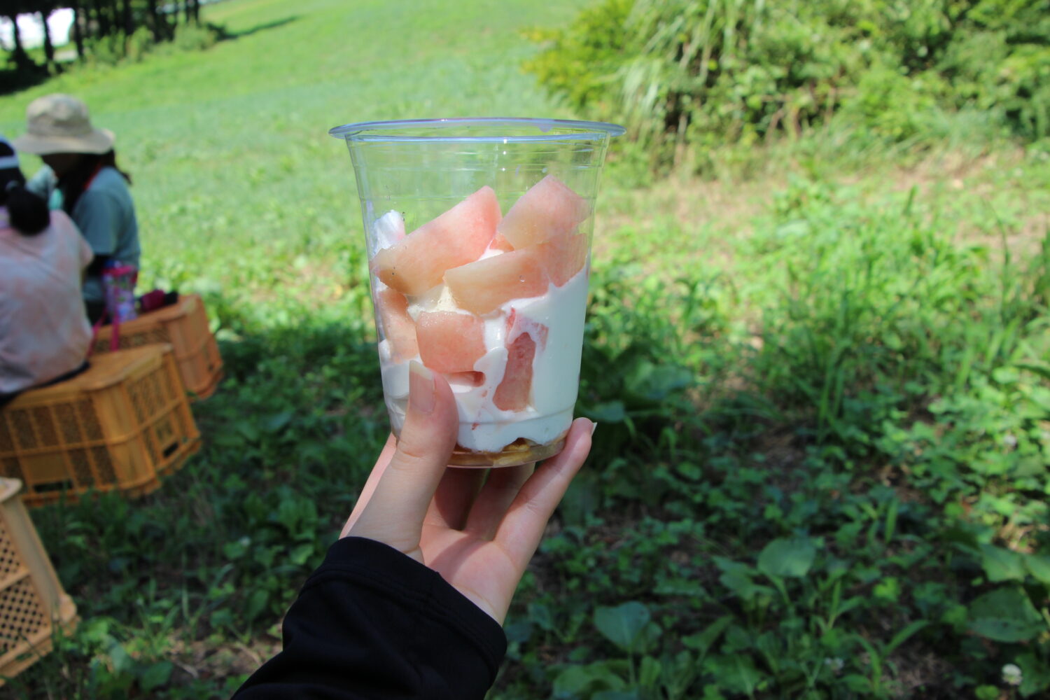 農園で実った桃の中から好きなものを選んで収穫し、収穫した桃をその場でパフェにして味わえます😋(写真は昨年の収穫体験)
