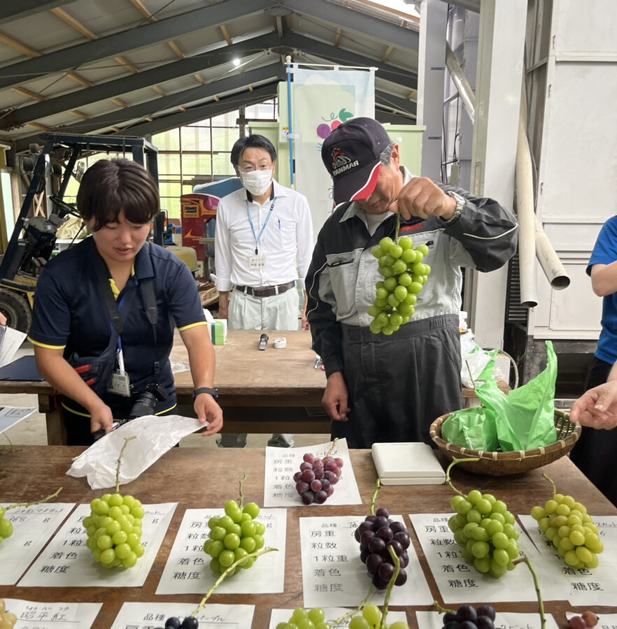 目揃え会では、沢山の品種を持ち寄り、色付けや粒の大きさ、糖度などの出荷基準を決めていました。