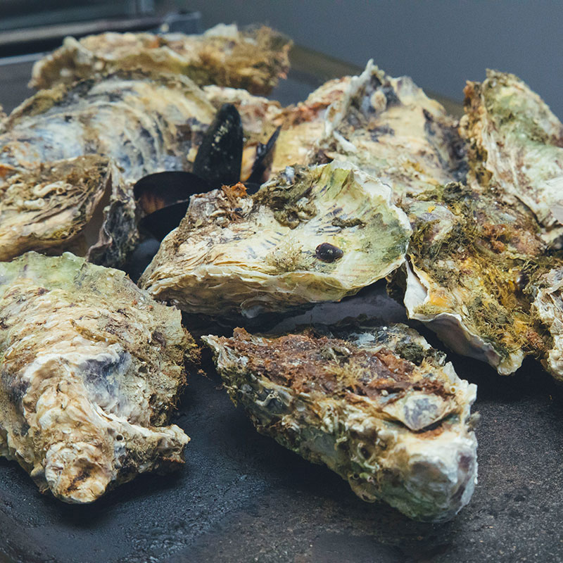 水揚げしたばかりの新鮮な牡蠣を鉄板で焼いて食べます。