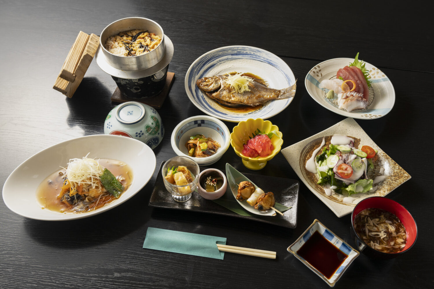 お造り、煮魚、揚げ物に釜めしまで付いたお手頃プラン