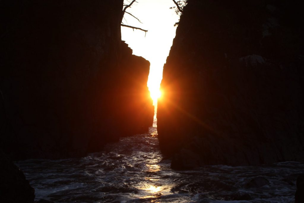 いよいよこの季節がやってきましたね。南三陸町と石巻市の市境にある「神割崎」の奇岩の間から日の出が眺められる時期になりました。
