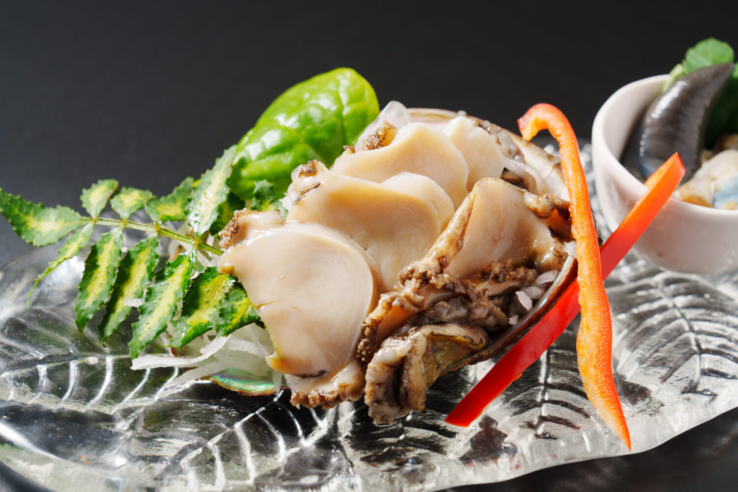 新鮮なお刺身は想像以上にコリコリ食感!柔らかいあわびを食べたい方は、お好みの柔らかさにできるしゃぶしゃぶ、じっくり焼いてあわびが踊る様子が楽しめる踊り焼きプランがおすすめです。