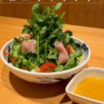 初開催中『南三陸町産天然あわびフェア』メニュー、「活あわびのしゃぶしゃぶ」の付け合わせに南三陸産のセリを使っています。旬をお楽しみいただける一品です。