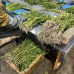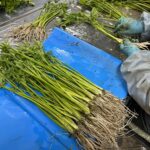 収穫したセリを作業小屋へ運び、製品にするための選別作業を行います。これも見極める力と速さが重要。