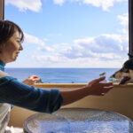 昭和の懐かしさが漂うレトロな宿。志津川湾を一望でき、漁師のご主人が毎朝仕入れる新鮮な旬の魚介を使った料理が自慢です。看板猫がお迎えしてくれますよ。