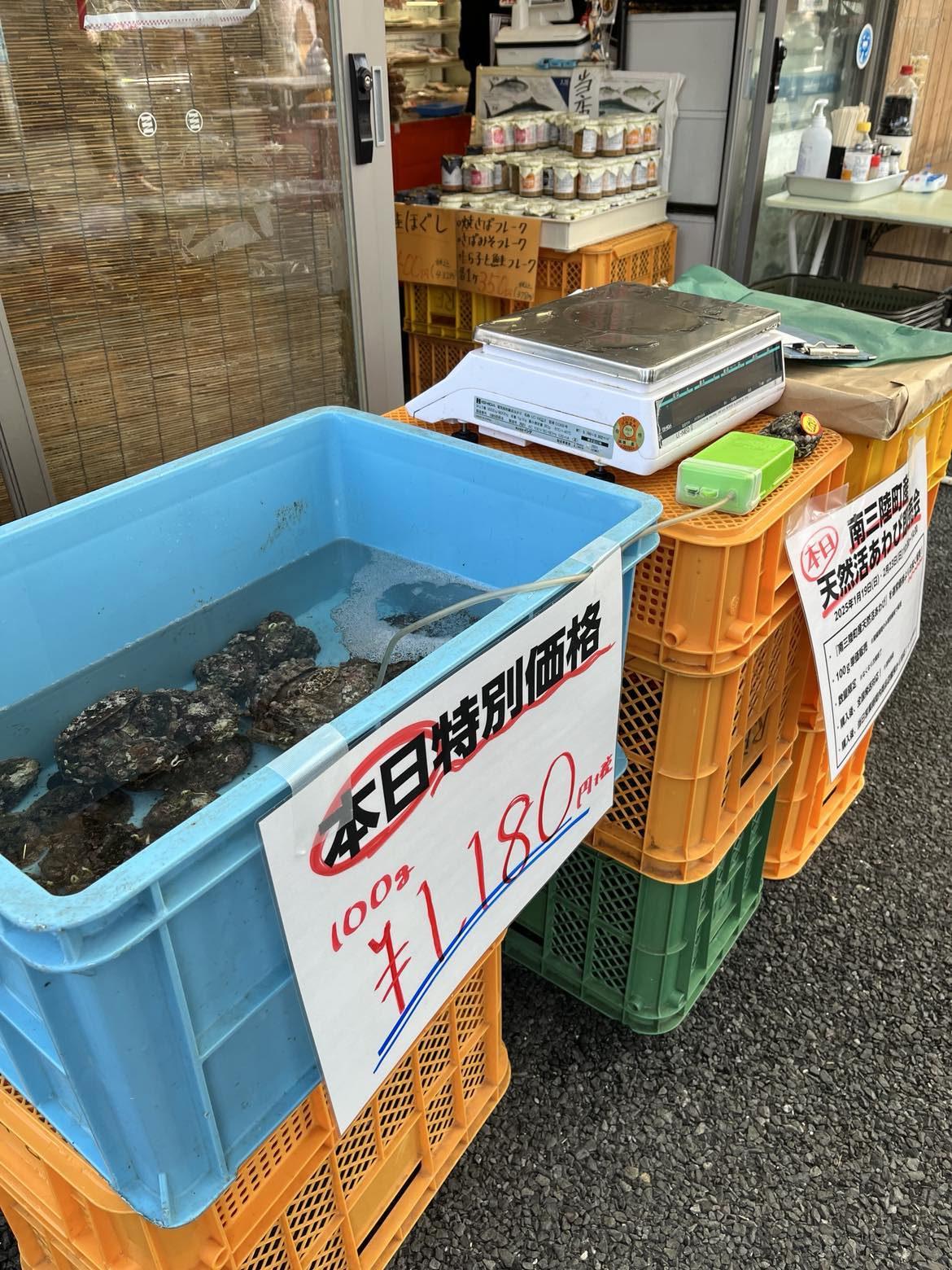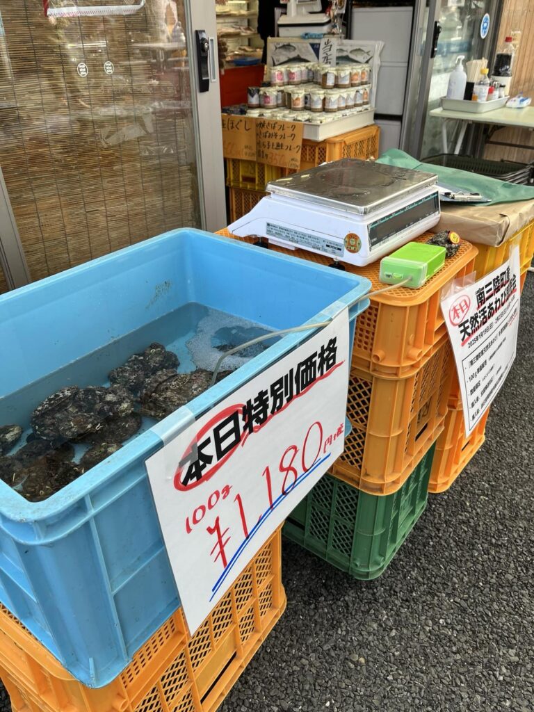 あわびを食べたことはあっても、初めて自宅用に買ってみる!という方も多く、捌き方のレクチャーやおすすめの食べ方をさせていただきました!お客様と会話しながら対面で販売できるっていいですね。