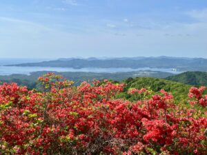 春には鮮やかな赤色のツツジが山肌を彩り、その美しさでも知られています。リアス海岸を眼下に望む景色は、これまでの疲れを忘れさせてくれる最高の絶景です!