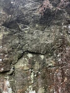 クモ滝を過ぎると、行者が彫り刻んだとされる不動明王の磨崖仏が岩壁に残されている場所がありますので、よく目を凝らして探してみてください。