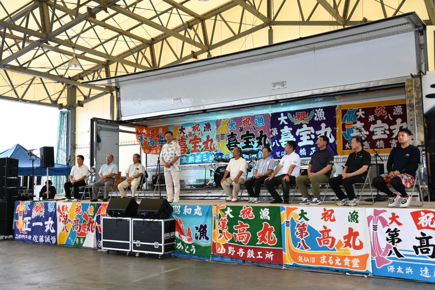 南三陸町長や実行委員長をはじめ、関係者が登壇し、晴れやかな雰囲気の中で開会式が行われました。