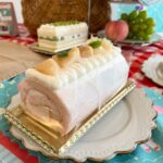 🍑桃のロールケーキは、スポンジまで桃色にとても可愛らしい見た目に。