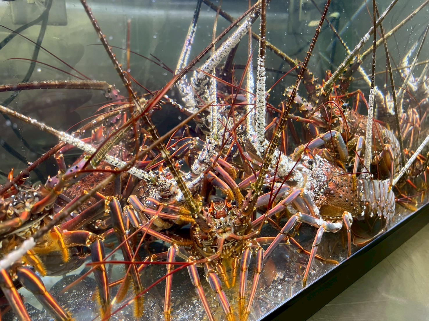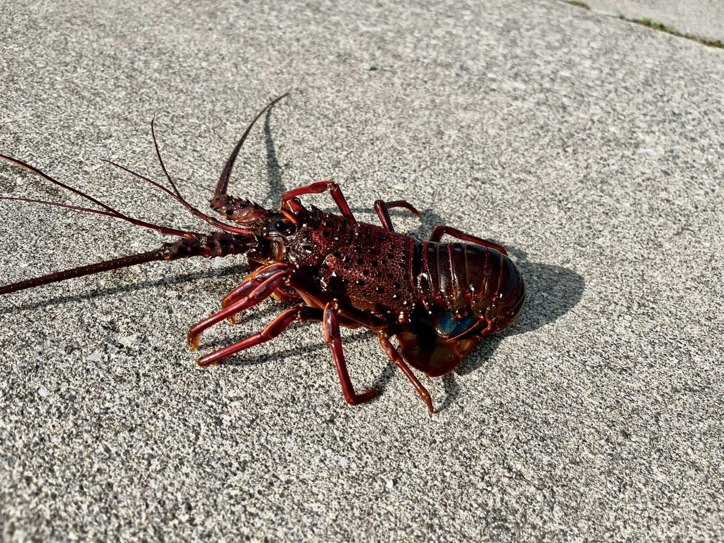 そして完全にお皿から出てしまったので、地面を歩くイセエビを撮ってみました。笑