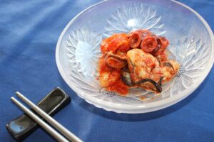南三陸高校の「地域学・地域探究学」の授業から生まれた商品で、地域の課題解決を目指して高校生たちが考案しました。南三陸の海鮮とキムチを組み合わせた一品で、商品化にあたっては、町内事業者である山内鮮魚店のサポートのもと完成しました。