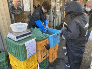 同日には、さんさん商店街「ロイヤルフィッシュ」で活あわび即売会も行われ、冬の味覚を求めて多くの方が訪れました。