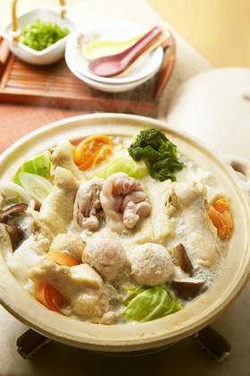 鶏肉、豆腐、旬の海産物(秋鮭など…)、うどん、野菜、特製つけダレ(タコ味噌、淡醤油、胡麻ソース)
