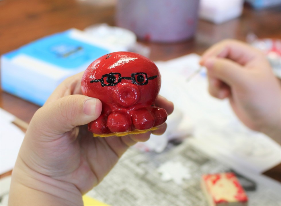自分で色を塗って作り上げれば、オクトパス君に吹き込まれる想いも倍増。これで合格間違いなし??