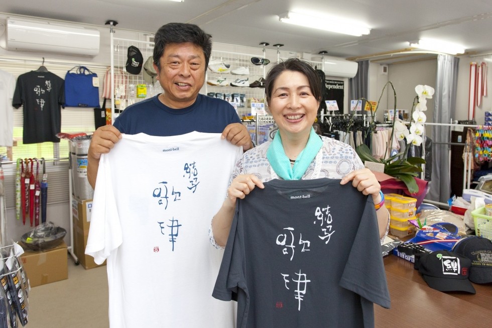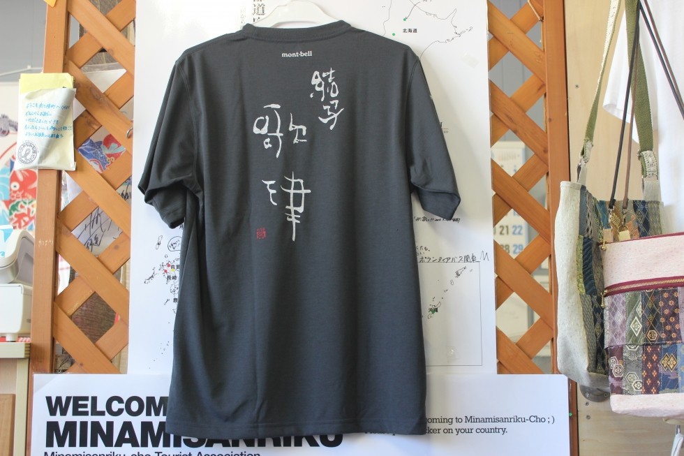 なんと、今回の商品はアウトドア商品で有名な「モンベル」と書道家の紫舟さんによる<歌津復興支援プロジェクト>で作成され、