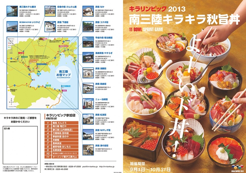 パンフレットは各キラキラ丼提供店、または観光協会事務所にて設置してあります。