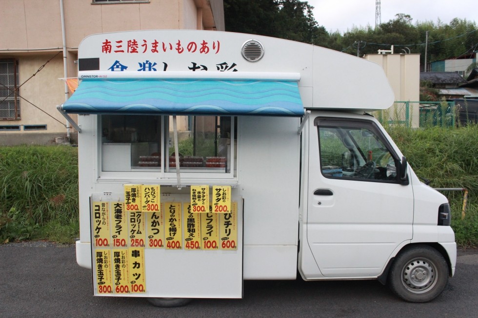 「食楽しお彩」さんは現在、南三陸町の仮設住宅等を巡回し、移動販売をしています。