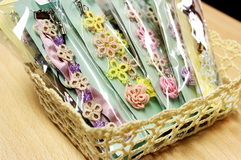 そのほかにも、レースストラップ(¥500)やバックチャーム(¥500)、