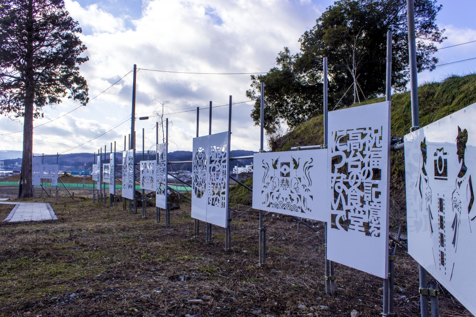 南三陸町五日町、南町の津波被災跡地に設置していたきりこボードを、