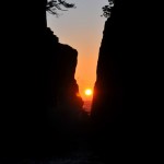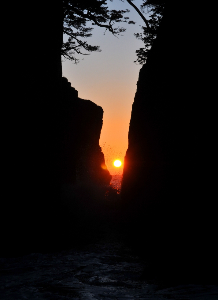 ちょうど岩の間から日の出を望むことができます。