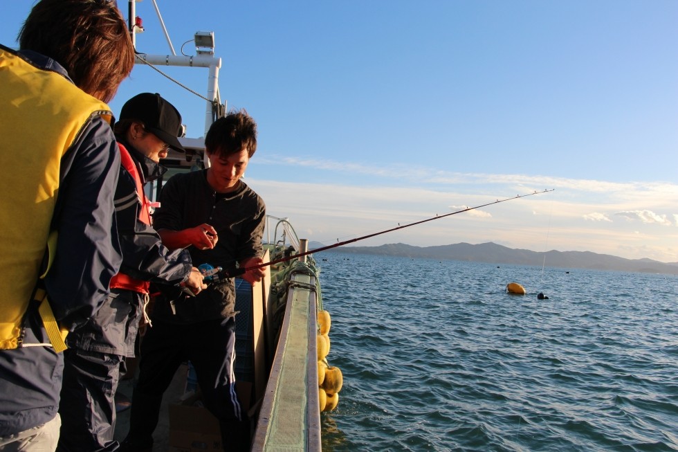 伝える為養殖施設の見学やカゴ漁、釣り体験、海の幸の直販を