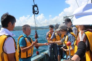 2フィールドワーク(漁業体験):60分(漁船に乗船し、養殖現場を見学)