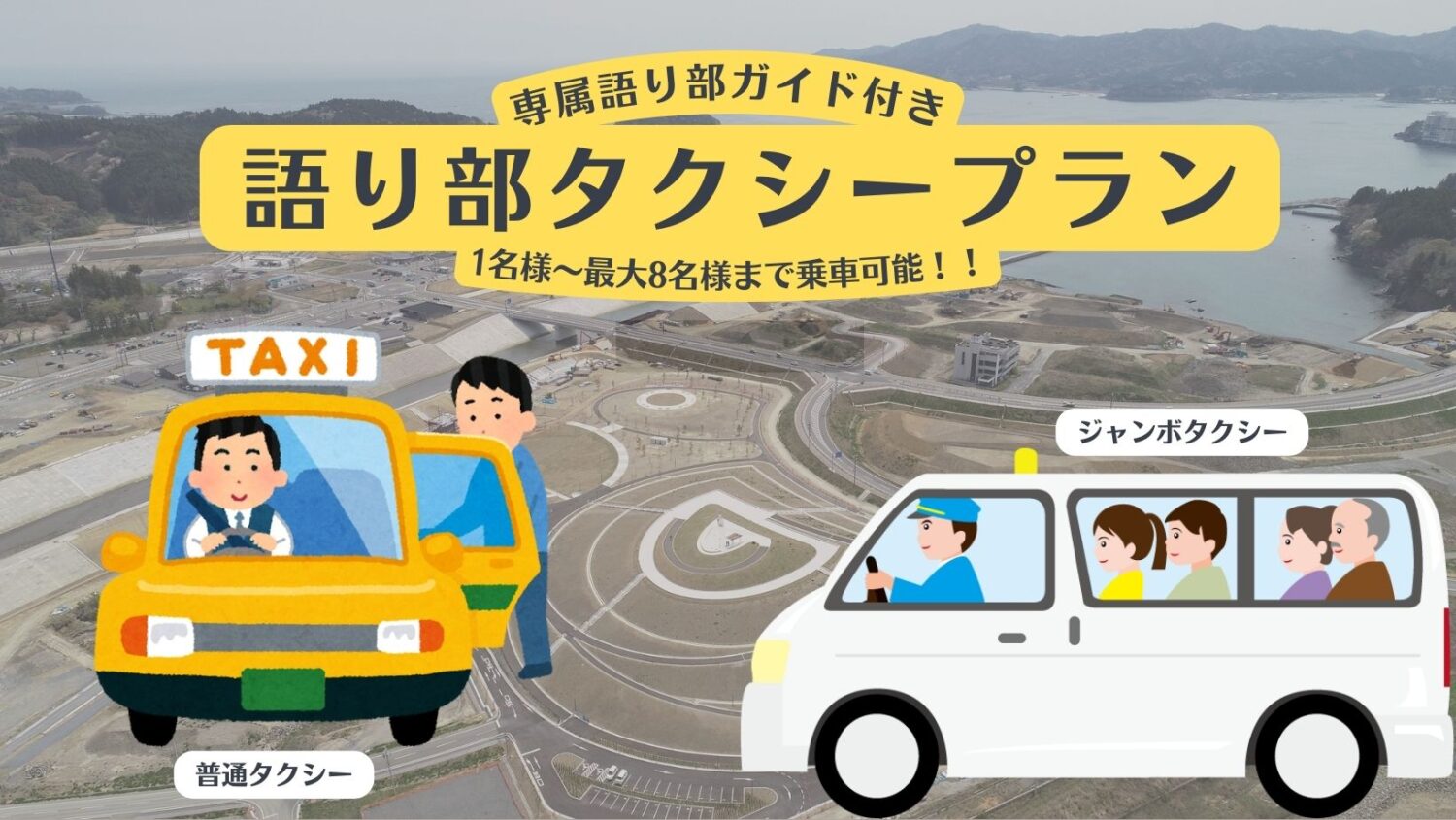 普通タクシーは最大3名様。ジャンボタクシーは最大8名様までご乗車可能!個人旅行や小団体での研修に、語り部タクシープランをご検討下さい。