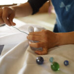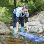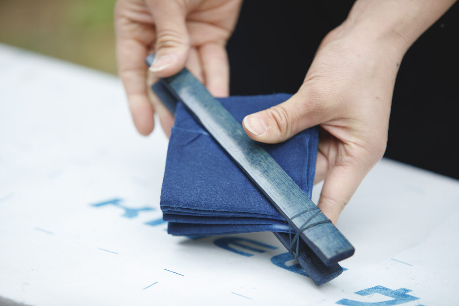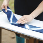 でんでんむしカンパニーの工房で、いろいろな道具を使ってオリジナルな藍染め体験ができます。自分で持ち込んだものを藍染めしたり、ハンカチやTシャツなど普段から愛着をもてるものに藍染めすることもできます。世界に一つだけのオリジナル藍染め、古民家ののどかな空間の中で一度体験したら、心も身体もリラックス。