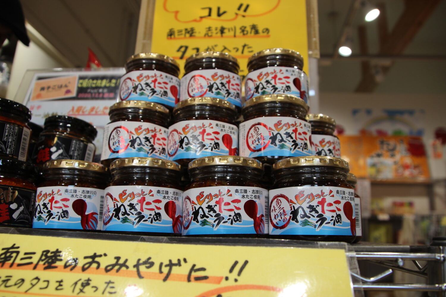 南三陸産の名物タコを使った「ねぎたこラー油」🐙