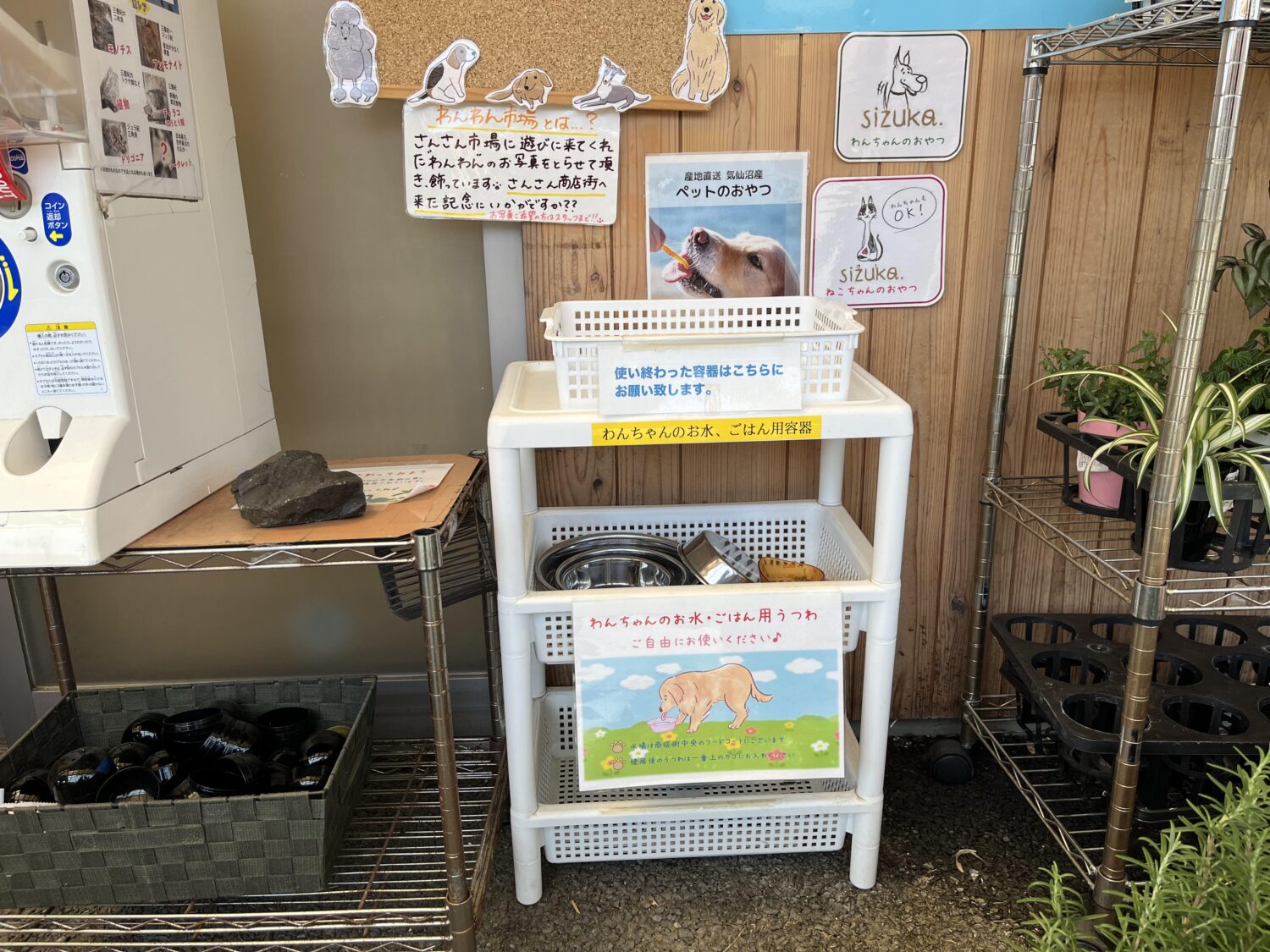 さらに、さんさん商店街にはペットのリードをかけられる場所がお店近くに数か所設置されているので、ワンちゃんと一緒に来ても、お買い物を楽しんで頂きやすいです。また、さんさん市場では南三陸産のマタタビも販売しているので、猫を飼っている方はぜひお土産として購入してみてはいかがでしょうか?