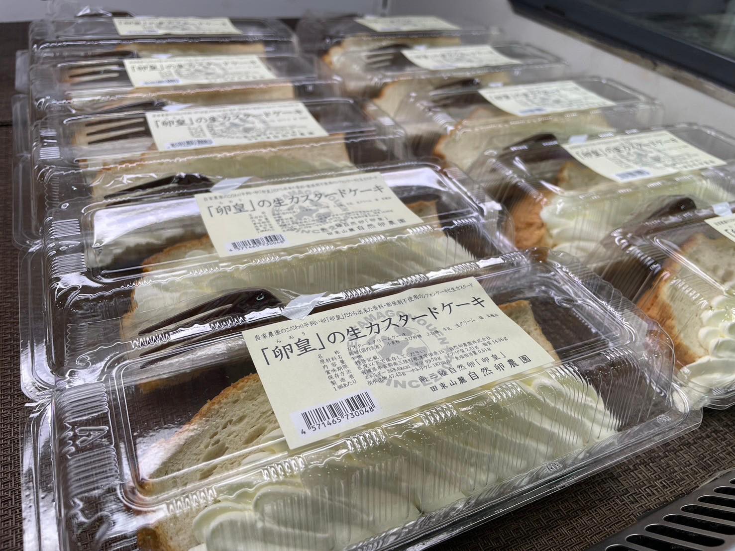 南三陸町の田束山麓で育てられた自然卵「卵皇(らおう)」からつくられるスイーツは大人気商品。特に、「卵皇」の生カスタードケーキはさんさん市場のみ販売されているレアな商品です。