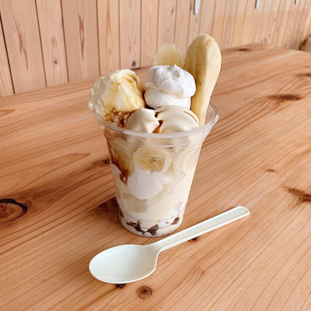 南三陸町の田束山麓で育てられた自然卵「卵皇(らおう)」を使用した「プレミアムプリンパフェ」も販売しています。
